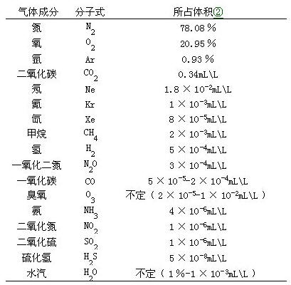大气是由多种气体混合组成的气体及浮悬其中的液态和固态杂质所组成。表1•1列举了其气体成分,其中氮(N2)氧(O2)和氩(Ar)三者合占大气总体积的99.96%,其它气体含量甚微。除