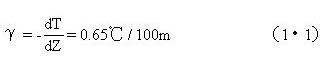 (1)气温随高度增加而降低:由于对流层主要是从地面得到热量,因此气温随高度增加而降低。高山常年积雪,高空的云多为冰晶组成,就是这一特征的明显表现。对流层中,气温随高度增加而降低的量值,因所在地区、所在高度和季节等因素而异。平均而言,高度每增加100m,气温则下降约0.65℃,这称为气温直减率,也叫气温垂直梯度,通常以γ表示: