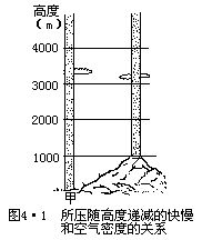 一个地方的气压值经常有变化,变化的根本原因是其上空大气柱中空气质量的增多或减少。大气柱质量的增减又往往是大气柱厚度和密度改变的反映。当气柱增厚、密度增大时,则空气质量增多,气压就升高。反之,气压则减小。因而,任何地方的气压值总是随着海拔高度的增高而递减。如图4•1所示,甲气柱从地面到1000m和从1000m到
