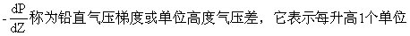 式中负号表示随高度增高,气压降低。若△Z趋于无限小,则上式可写成