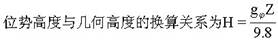 式中 H为位势高度(位势米),Z为几何高度(m),g,为纬度φ处的重力加速度(m/s2)。当g取9.8m/s2时,位势高度H和几何高度Z在数值上相同,但两者物理意义完全不同,位势米是表示能量的单位,几何米是表示几何高度的单位。由于大气是在地球重力场中运动着,时刻受到重力的作用,因此用位势米表示不同高度气块所具有的位能,显然比用几何高度要好。