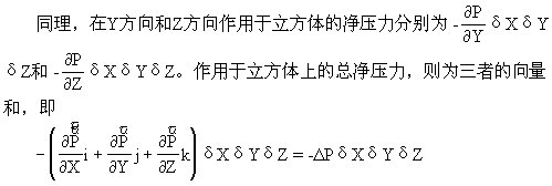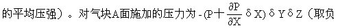 号是因所取压强方向与X方向相反),因而在X方向上,周围空气作用于立方体的净压力为此两力之和,即