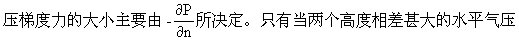 在大气中气压梯度力垂直分量比水平分量大得多,但是重力与Gz始终处于平衡状态,因而在垂直方向上一般不会造成强大的垂直加速度。而水平气压梯度力虽小,由于没有其它实质力与它相平衡,在一定条件下却能造成较大的空气水平运动。