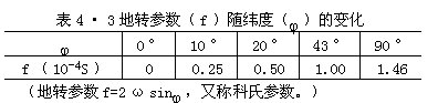 地转偏向力只是在空气相对于地面有运动时才产生,空气处于静止状态时没有地转偏向力作用。而且地转偏向力只改变气块运动方向而不能改变其运动速度。在风速相同情况下它随纬度减小而减小。见表4•3。