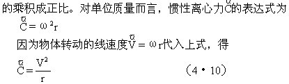 (4•10)式表明惯性离心力C的大小与运动物体的线速度V的平方成正比,与曲率半径r成反比。