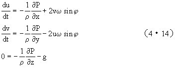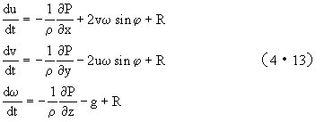 这是研究自由大气运动时被广泛应用的运动方程式。方程中第三式是静力平衡方程。