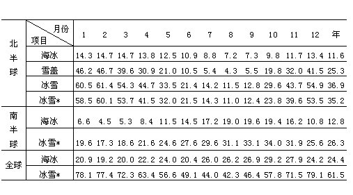 冰雪覆盖(冰雪圈)是气候系统组成部分之一,它包括季节性雪被、高山冰川、大陆冰盖、永冻土和海冰等。由于它们的物理性质与无冰雪覆盖的陆地和海洋不同,形成一种特殊性质的下垫面。它们不仅影响其所在地的气候,而且还能对另一洲,另一半球的大气环流、气温和降水产生显著的影响,并能影响全球海平面的高低。在气候形成和变化中冰雪覆盖是一个不可忽视的因子。 一、世界冰雪覆盖概况 冰雪覆盖既需要冰点以下的低温,还必须有充足的固态降水,以维持雪 和冰的供应。图6·35给出全球平均气温、平均降水量和雪线高度随纬度的变化。所谓雪线是指某一高度以上,周围视线以内有一半以上为积雪覆盖且终年不化时的高度(Snow line)。雪线高度主要因纬度而异。由图6·35可见,全球最大雪线高度并不出现在赤道,而出现在南北半球的热带和副热带,特别是在其干旱气候区。因为这些干旱气候区降水供应少,晴天多,又多下沉气流,积雪比较容易融化,而赤道地区降水量大、云量多,日照百分率不如热带、副热带干旱区大的缘故。随着纬度的继续增高,气温愈益降低,在总降水量中雪量的比例逐渐增大,冬长夏短,雪线乃逐渐降低。到了高纬度,长冬无夏,地面积雪终年不化,雪线也就降到地平面上。 在同纬度的山地,雪线高度可因种种条件各不相同。例如在冬季,降雪多的地区雪线比较低,在降水集中于夏季的地区,雪线就比较高;向阳坡的积雪比背阳坡易于融化,向风坡的积雪易被吹散,背风坡积雪易于积存;向海洋的湿润坡降雪量大于向内陆的干旱坡;这些都会导致不同坡向雪线高低不同。例如喜马拉亚山南坡雪线高度平均位于3900m,北坡平均位于4200m,个别地区雪线高达6000m。 地球上各种形式的总水量估计为1384×106km3,其中约有2.15%是冻结的。就淡水而言,几乎有80%—85%是以冰和雪的形式存在的。自1966年秋季开始,人造卫星提供了连续的、大范围的冰雪覆盖资料。从平均值看来,全地球约有10%的面积为冰雪所覆盖。现代地球冰雪圈各组成部分所占面积的年平均值如表6·16所示。 大陆雪盖以季节性积雪为主,夏季亦有积雪,但面积大为缩小,有时有的地区积雪可维持数年之久,但不稳定。如果积雪长期维持则会转变为大陆冰盖又称大陆冰原。南极冰原是世界上最大的冰原,面积达13.6×106km2,格陵兰冰原面积约为1.8×106km2,山岳冰川的面积合计约为0.5×106km2,三者冰体的体积之比约为90∶9∶1。永冻土分布在高纬,欧亚大陆和北美大陆的高纬地区,其最大深度在西伯利亚为1400m,在北美为600m。 海冰主要指在北冰洋及环绕南极大陆的海洋中,漂浮在海上的冰。海冰覆盖在海面并不结成一个整体,而是分裂成块,冰块之间为水体。愈接近极区水体愈少,愈到低纬冰块所占比例愈小。 根据人造卫星探测资料,全球冰雪覆盖面积有明显的季节变化和年际变化。表6·17列出南北半球及全球海冰和大陆积雪各月平均值。由此表可见,北半球海冰和雪盖面积均以2月为最大,8月为最小。2月海冰面积相当于8月的2倍强,雪盖面积更相当于8月的10倍有余。南半球海冰面积以9月为最大,2月最小,其9月海冰面积约相当于2月的4倍多。可见南半球海冰面积的季节变化比北半球更大。 表6·17南北半球及全球海冰与大陆积雪覆盖面积(106km2) 海冰还有明显的年际变化。从70年代初到80年代初,南半球海冰面积平均减少了2.4×106km2,即大约减少了20%,变化相当激烈。但80年代初又有所回升,此后一直到90年代初,比较平稳,年际变化不明显。从近20年的资料看来,南半球海冰面积的变化远大于北半球。20年中北半球变化的幅度(经过平滑处理)只有0.4—0.5×106km2,而南半球则达到2.2×106km2以上,约为北半球的4—5倍。 大陆雪盖面积的年变化亦很显著。在1967—1979年中,北美和欧亚大陆雪盖面积分别增加了2.0×106km2和4.0×106km2(图略)。但从70年代末至90年代的十余年间,北半球大陆雪盖面积减少了大约4.0×106km2(图6·37)。在图6.37中,给出从1973至1991年北半球逐月雪盖面积距平值和经过滤波处理的雪盖面积距平变化曲线(粗曲线)。同时给出北半球30°N以北陆地气温的滤波曲线(细曲线)。可见两者的关系是十分密切的。 冰雪的另一种特征是新陈代谢率,亦即固态降水在冰体上的停留时间。由表6·16可见,大陆冰盖(冰原)存留的时间最长(103—105年),山岳冰川和永冻土其次(101—103年),以大陆雪盖和海冰存留时间较短(10-2—101年)。后二者对气候的异常影响特别显著。
